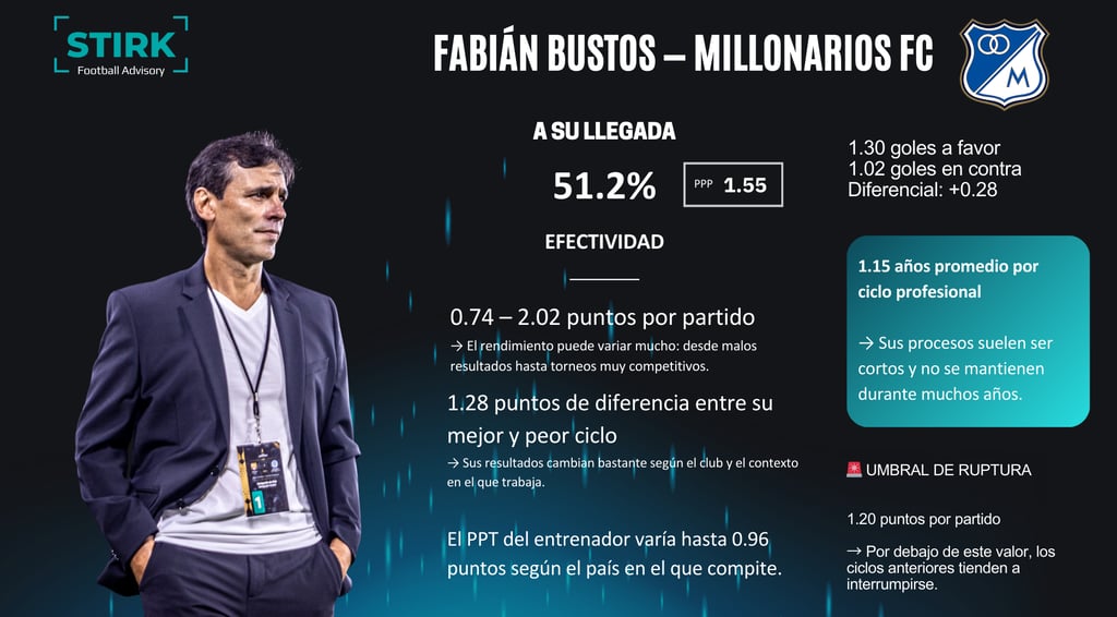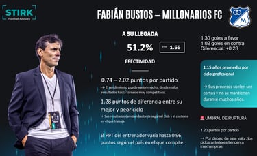 La llegada de Fabián Bustos a Millonarios FC abre un escenario interesante desde el punto de vista del análisis de rendimiento.