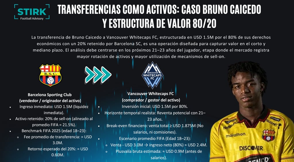 La transferencia del jugador ecuatoriano Bruno Caicedo desde Barcelona Sporting Club hacia Vancouver Whitecaps FC ilustra con claridad este enfoque.
